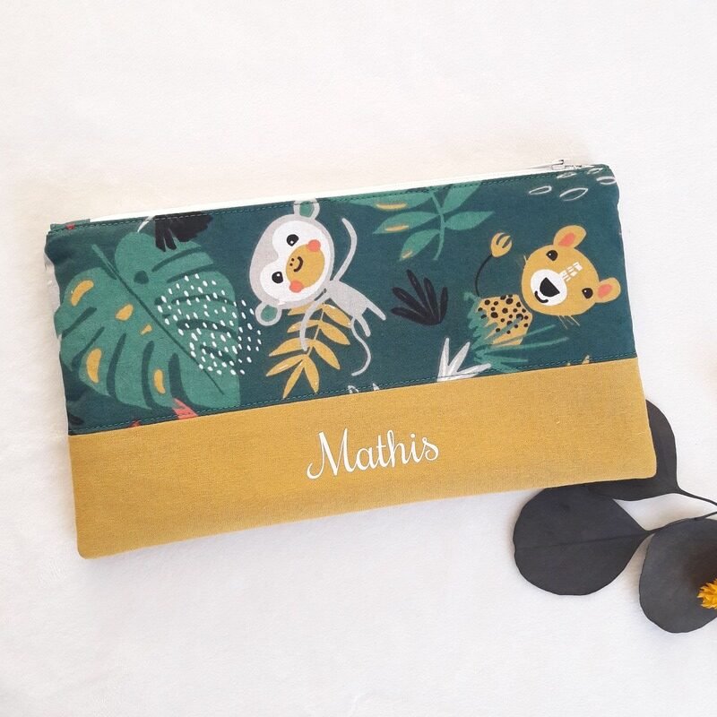 Je vous propose ici un exemple de trousse avec notre tissu jungle mais si vous préférez, vous pouvez choisir un tissu imprimé dans la galerie des tissus ici. Il vous suffira de m’indiquer le numéro de tissu choisi dans la case correspondante.